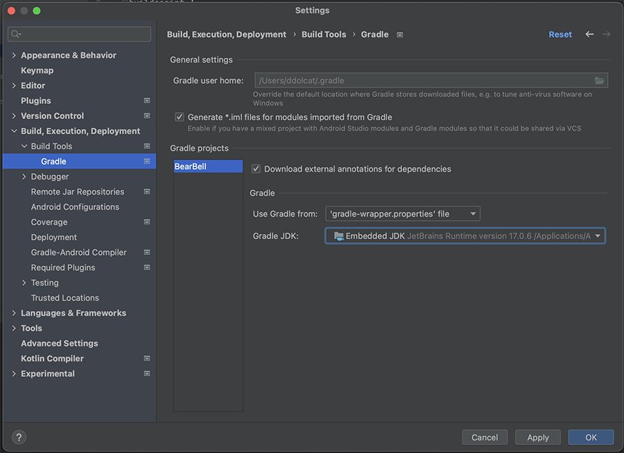 - Gradle JDK를 Embedded JDK로 설정