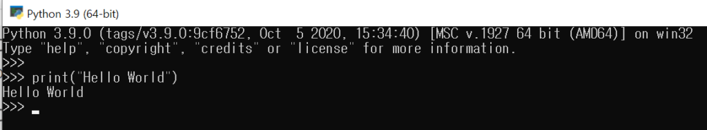 print를 사용하여 Hello World를 출력해 봅니다. 보통 언어를 시작하면 처음에 해보는 습관적인 행동이랄까요?? 언어를 배우게되는 책들을 보면 대부분 기본적으로 Hello World를 출력하는 예제를 코딩하게됩니다.