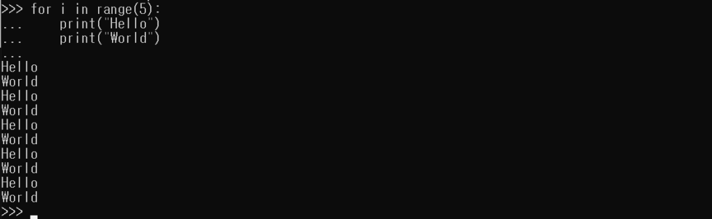 >>> a = 1 >>> while a <=20: ... print(a) ... a = a + 1 ... #실행결과 1 2 3 4 5 6 7 8 9 10 11 12 13 14 15 16 17 18 19 20