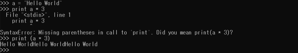 a = 20 b = "Hello" c = 3.14 print a+c //오류 발생됨 print (a+c)