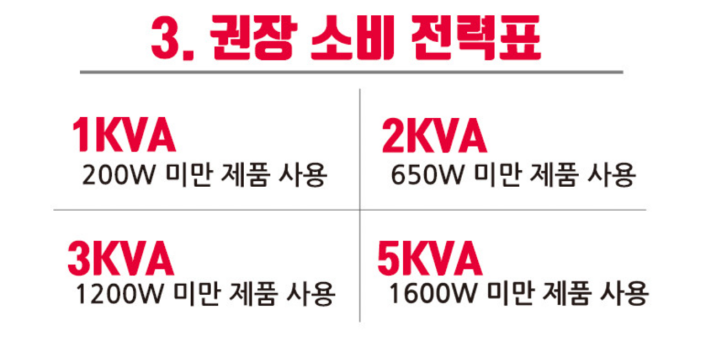 해당 제품에 맞는 제품을 찾아보니 무조건 5KVA를 구매해야 했다.