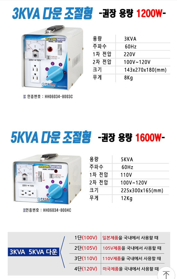 | 3단(110V) | 110V제품을 국내에서 사용할 때 |