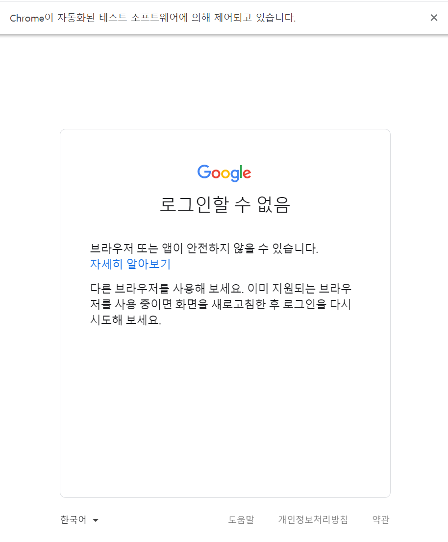 셀레니움을 이용하여 접근을 시도했으나, 로그인 단계에서 이미 차단 되었습니다.