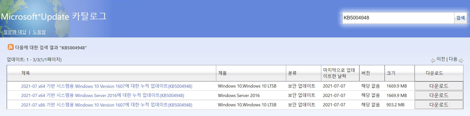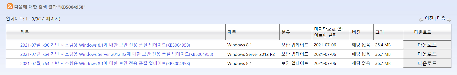 Windows 인쇄 스풀러 원격 코드 실행 취약성 보안 업데이트 파일 다운로드 (프린트나이트메어 취약점 보안 패치 파일 다운로드 경로)