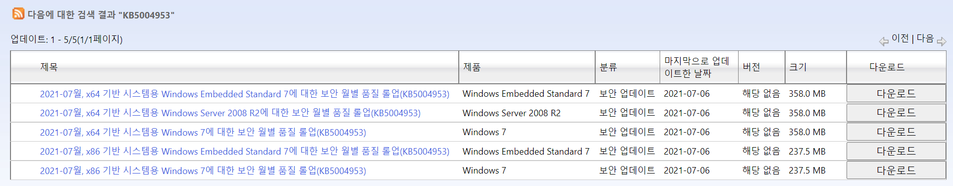 Windows 인쇄 스풀러 원격 코드 실행 취약성에 대한 보안 업데이트 지원하는 운영체제 제품 리스트 및 보안 패치 다운로드