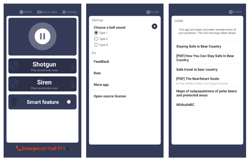 The “Smart Bear Bell” app for use while traveling in bear country, to alert bears of your presence.