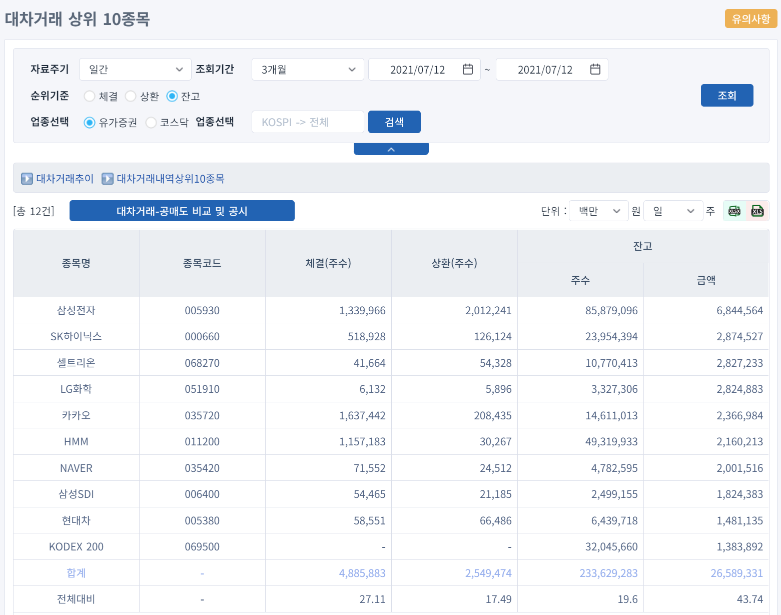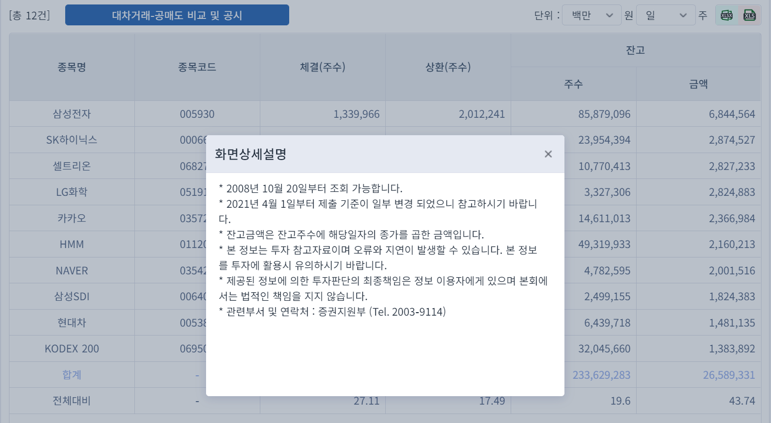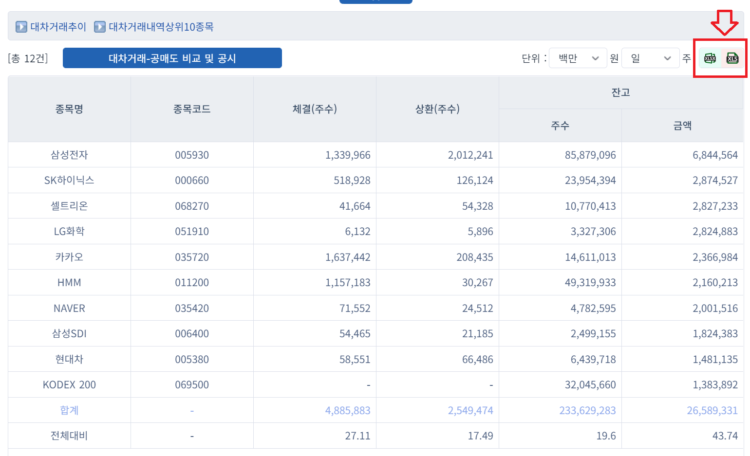 (주식시장) 대차거래 종목 확인하는 방법 및 대차거래 종목 엑셀 다운로드 하는 방법