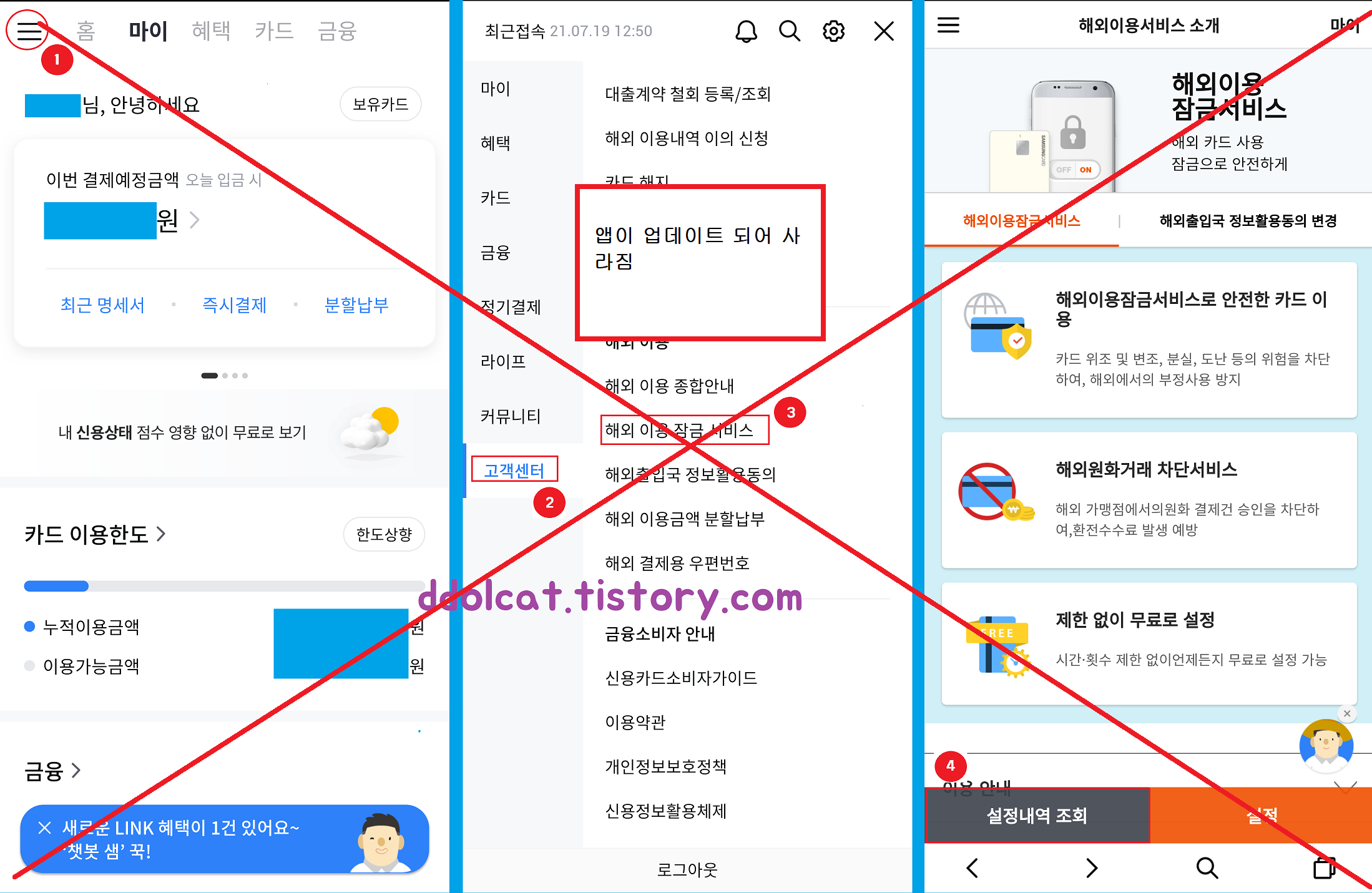 삼성카드 해외이용 잠금 서비스 메뉴 위치 찾아 가는 방법