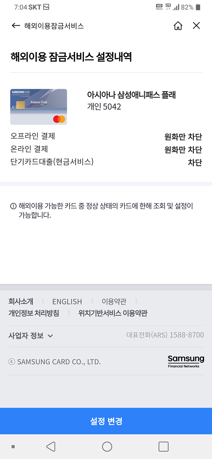 삼성카드 해외원화결제 차단 및 해제 하는 방법