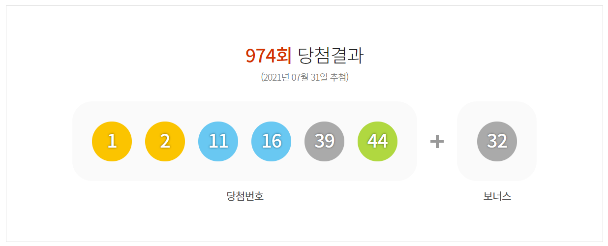 1등 로또 당첨번호는 1,2,11,16,39,44 (보너스 번호 32) 입니다