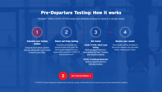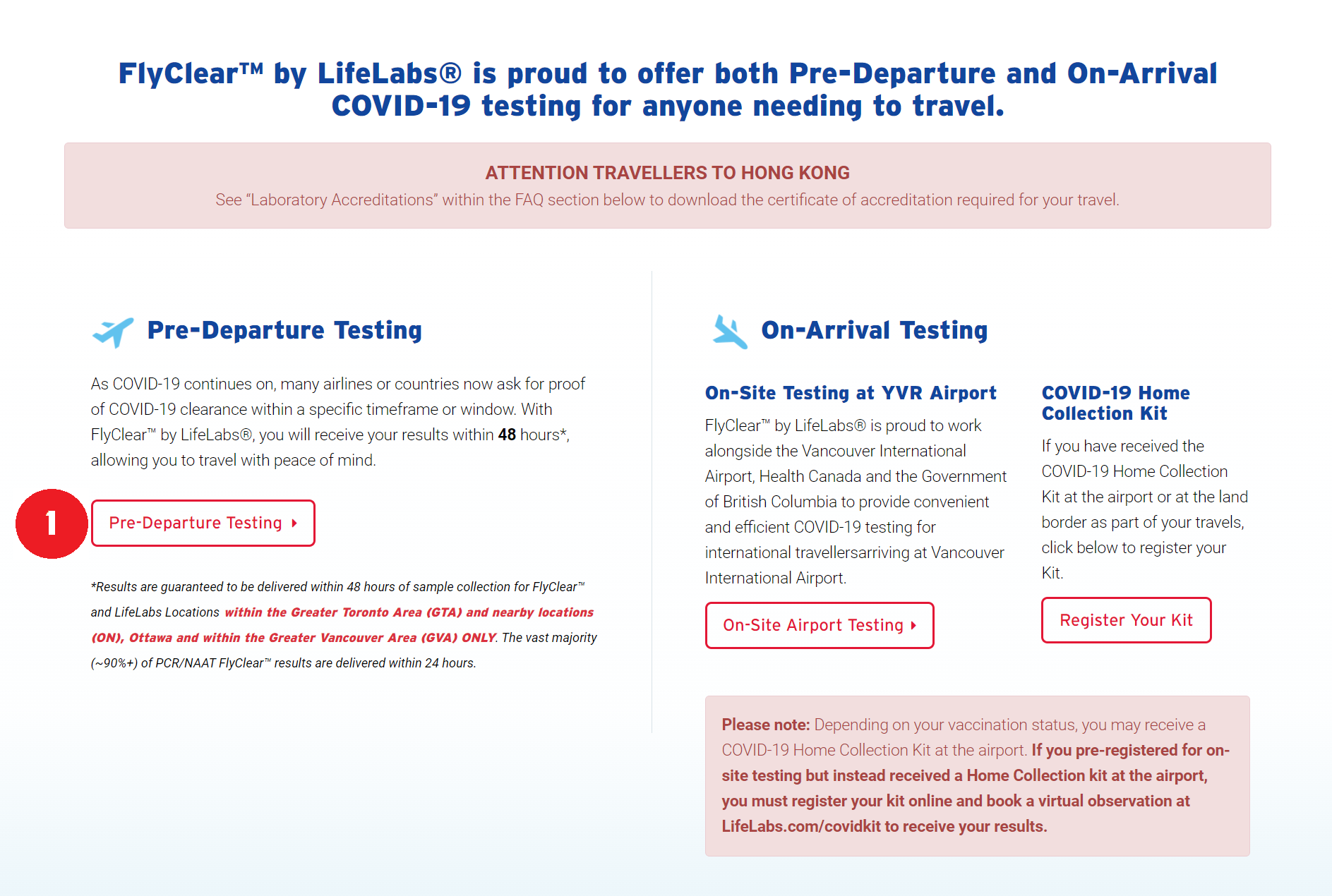 1. 라이프랩스(Life Labs) 사이트로 이동한 후 Pre-Departure Testing을 클릭합니다.