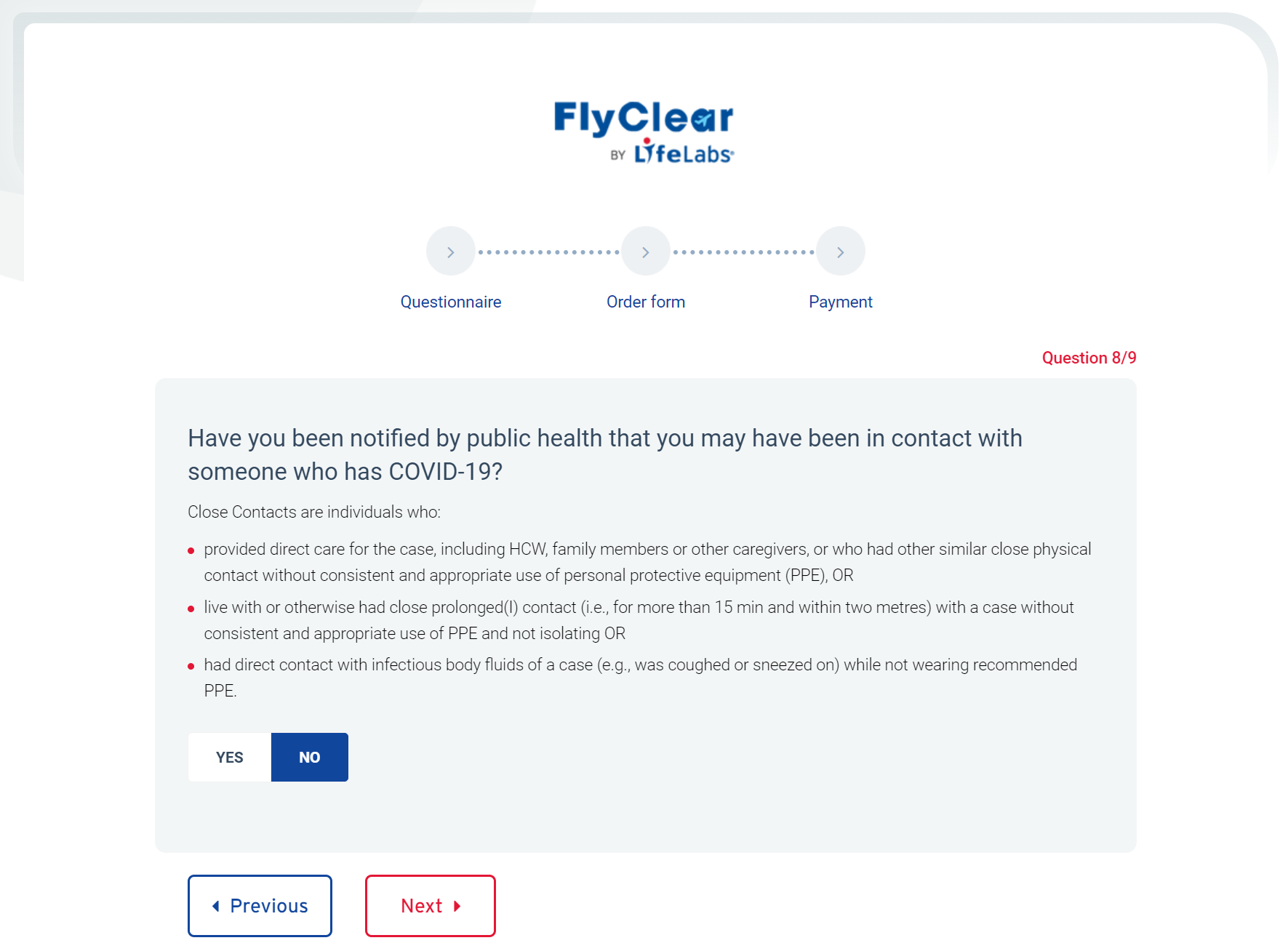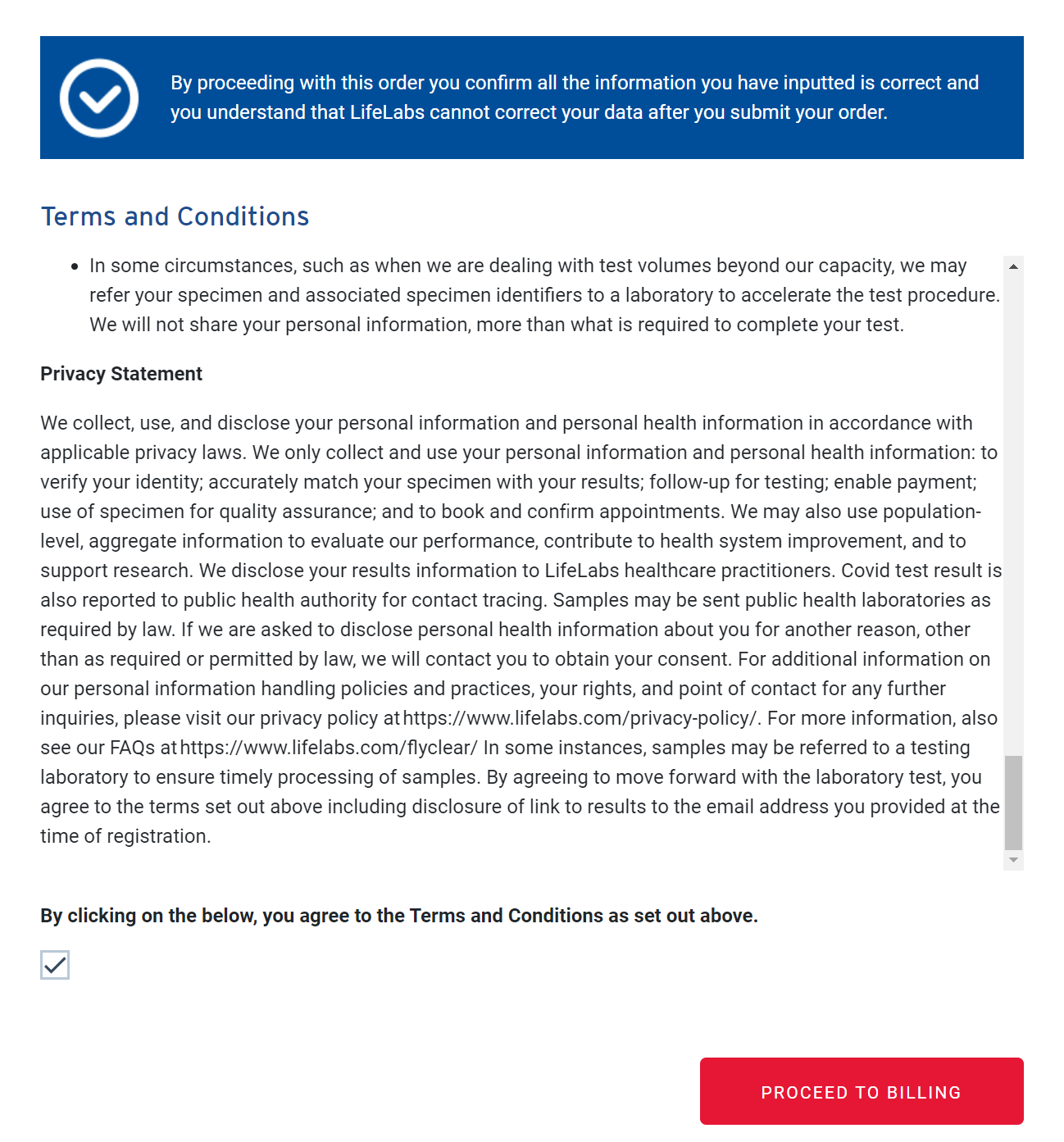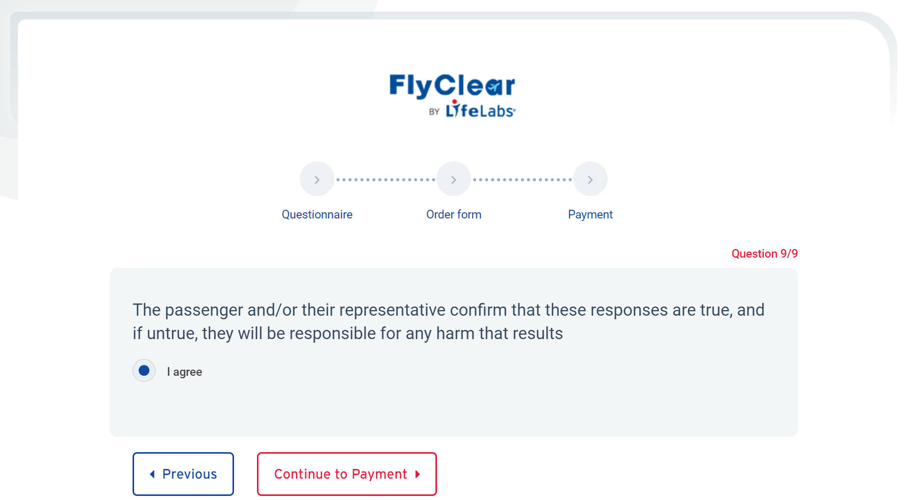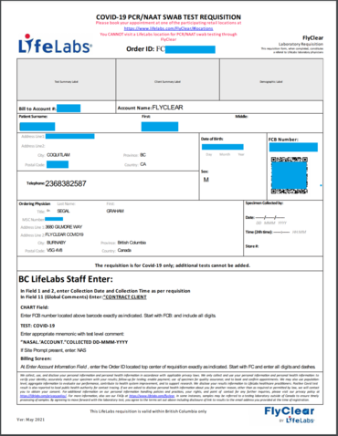 Thank you for choosing FlyClear™ by LifeLabs; we look forward to serving you again in the future. Sincerely, |