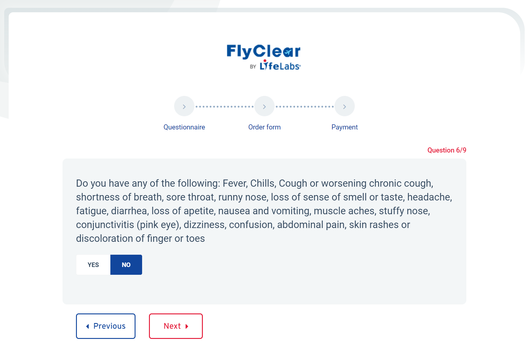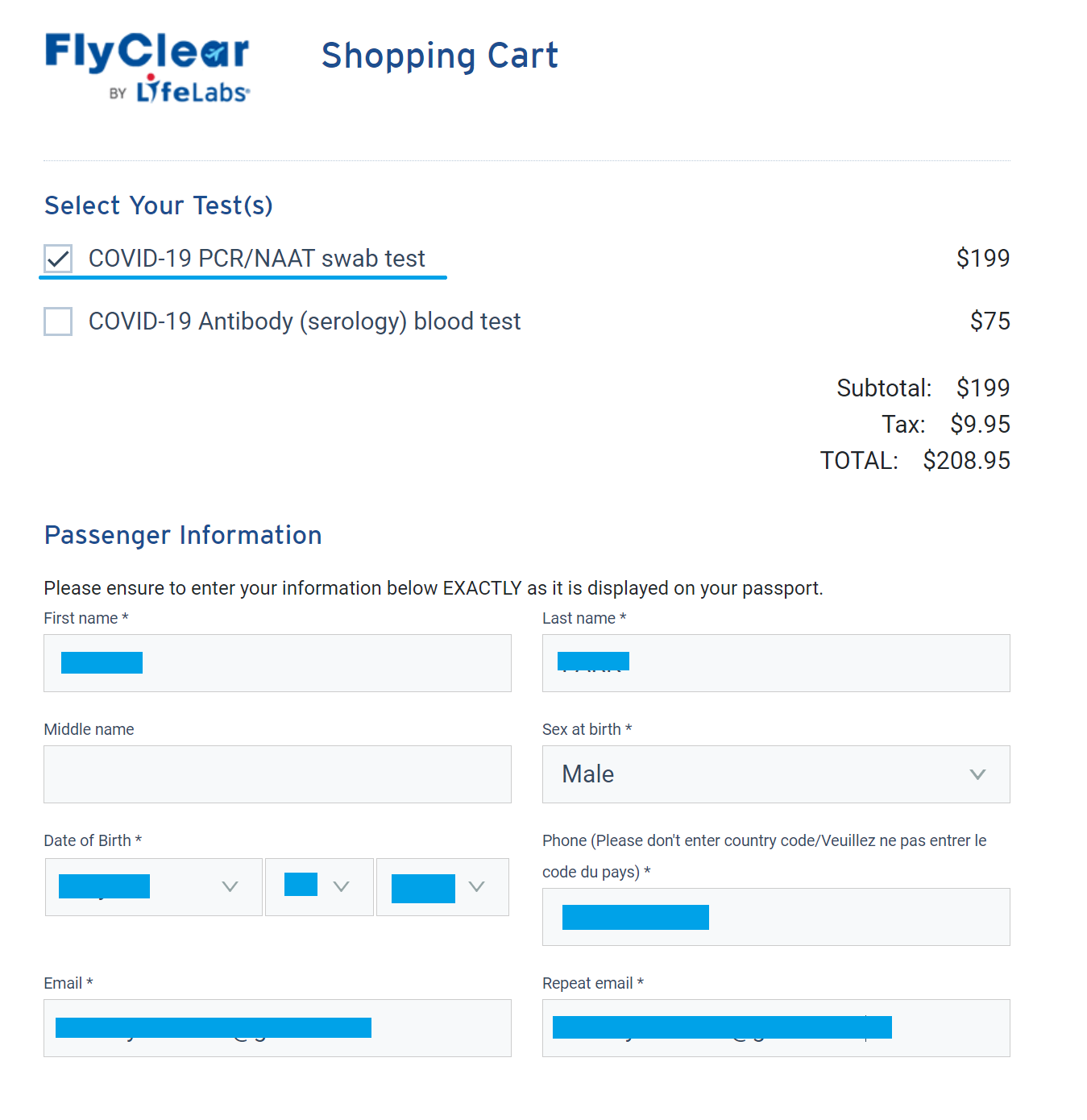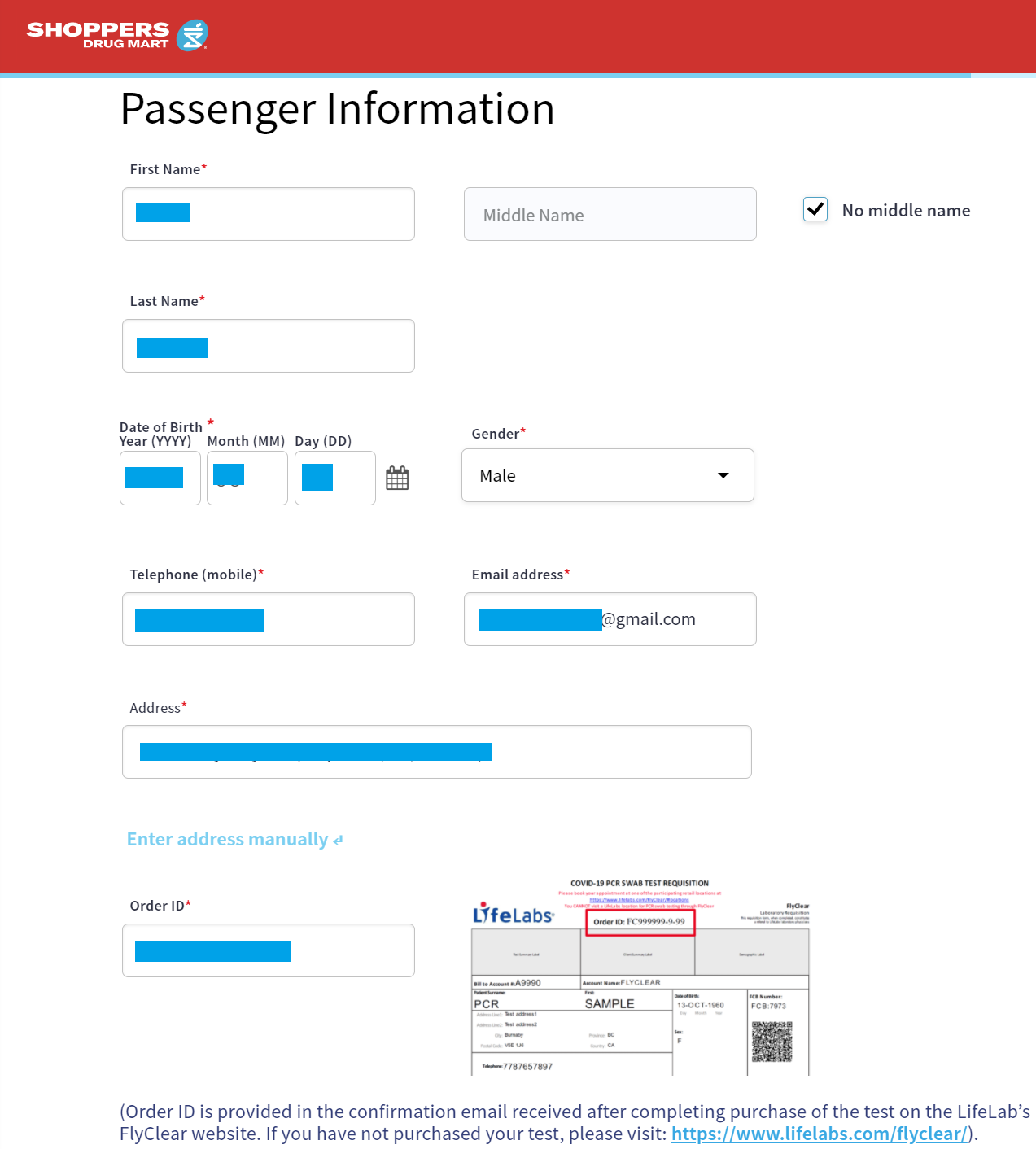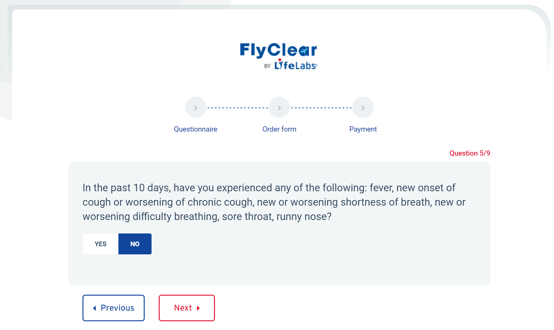 Thank you for choosing FlyClear™ by LifeLabs; we look forward to serving you again in the future. Sincerely, |