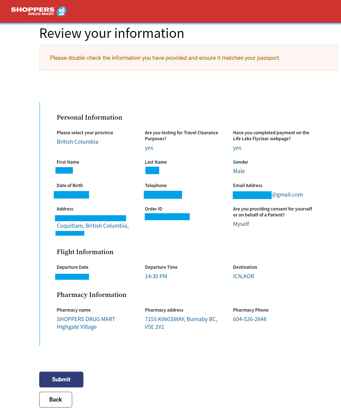 캐나다에서 한국 입국을 위한 PCR 검사, 라이프랩스(lifelabs.com) 및 샤퍼스(Shoppers) 예약 하는 방법