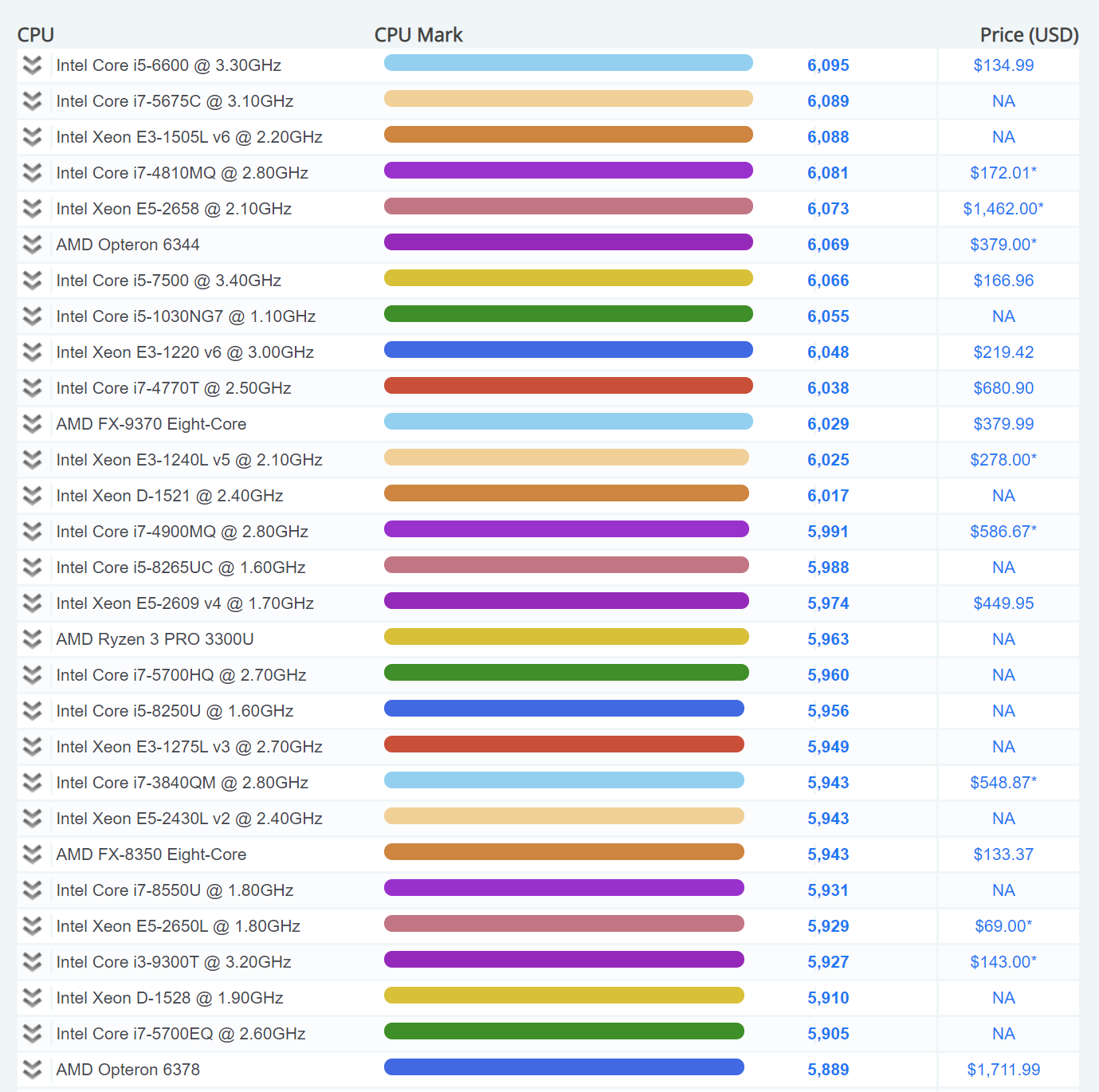 | 85 | AMD FX-8320 Eight-Core | 5,390 |