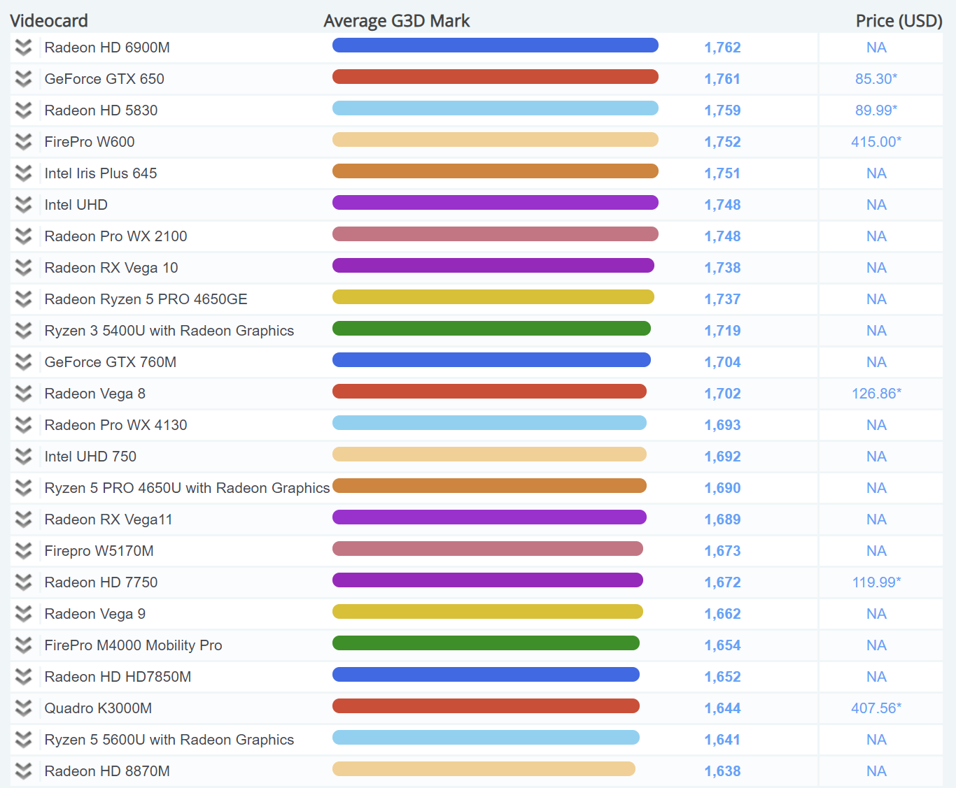 | 20 | FirePro M4000 Mobility Pro | 1,654 |