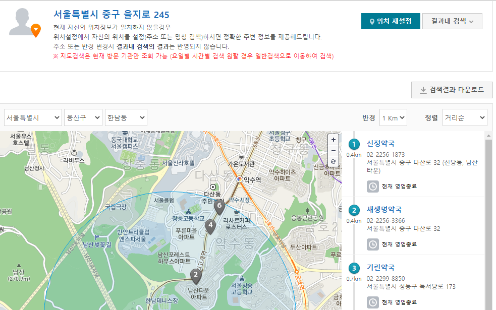 전국 모든 약국을 조회할 수 있으니 참고하세요.
