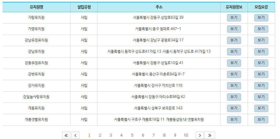 | 유치원명 | 상세정보 | |