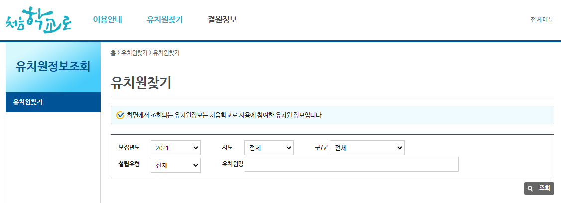 유치원찾기 바로가기:www.go-firstschool.go.kr