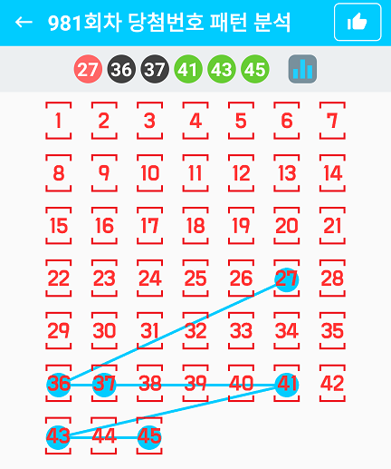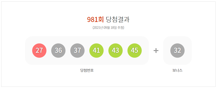 1등 로또 당첨번호는 27,36,37,41,43,45 (보너스 번호 32) 입니다