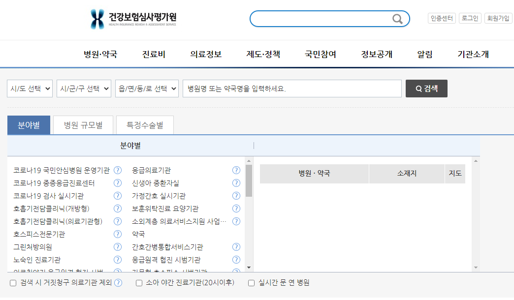심평원 바로가기 링크 : https://www.hira.or.kr/rd/hosp/getHospList.do