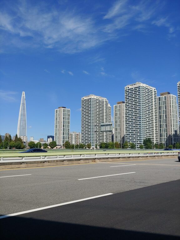 수서역에서 따릉이 타고 잠실가는 길에 맑은 파란 하늘이 반가워 사진으로 담다.