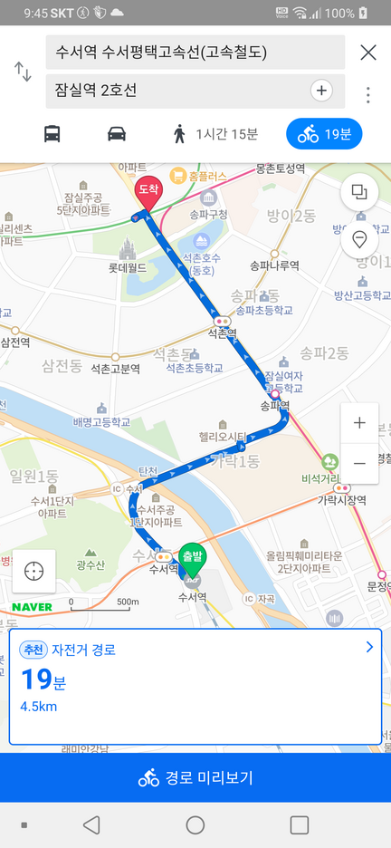 수서역에서 잠실역까지 지하철을 타고 가도 되지만 날씨 좋고 공기좋은 날엔 따릉이를 이용해보자. 수서역에서 잠실역까지 지하철을 타고 이동하는 시간과 자전거를 타고 이동하는 시간이 비슷하다.