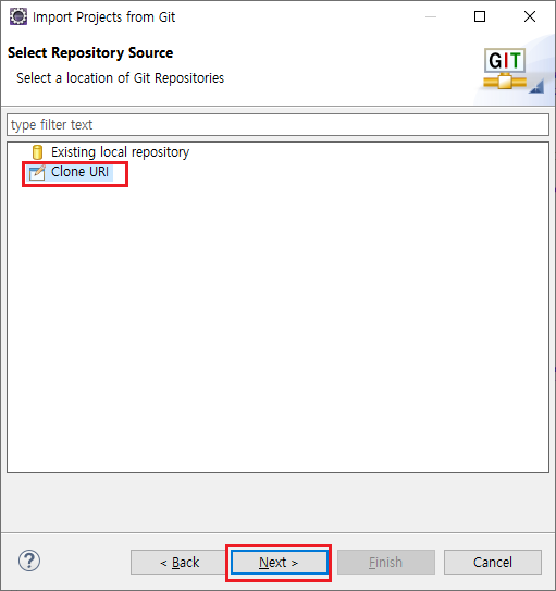 (Git 사이트에서 Clone URI 확인하는 방법은 글 아래쪽에서 확인하세요)