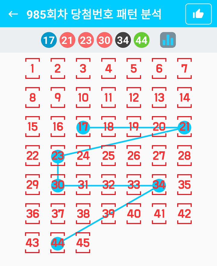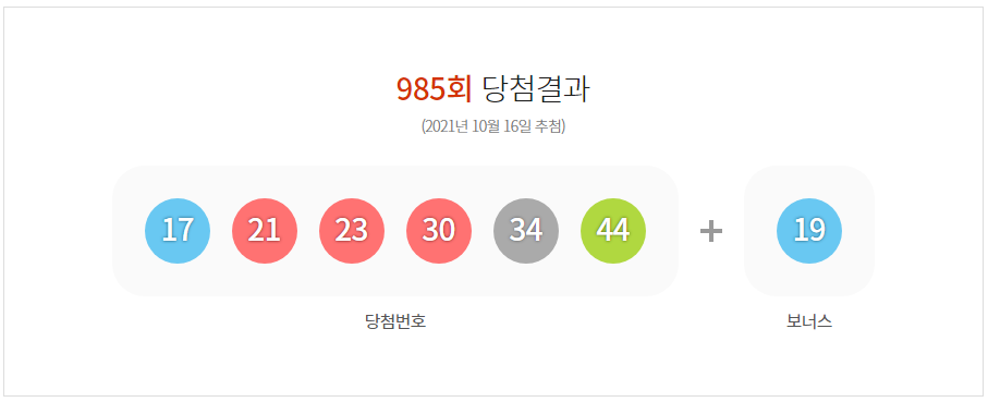 당첨번호 : 17, 21, 23, 30, 34, 44 + 19