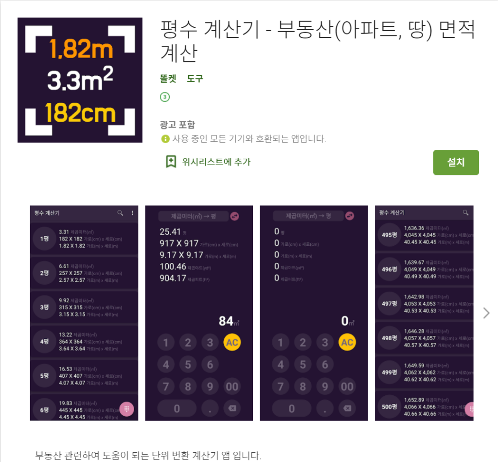 평수 계산기 - 부동산(아파트, 땅) 면적 계산 - 다운로드하기