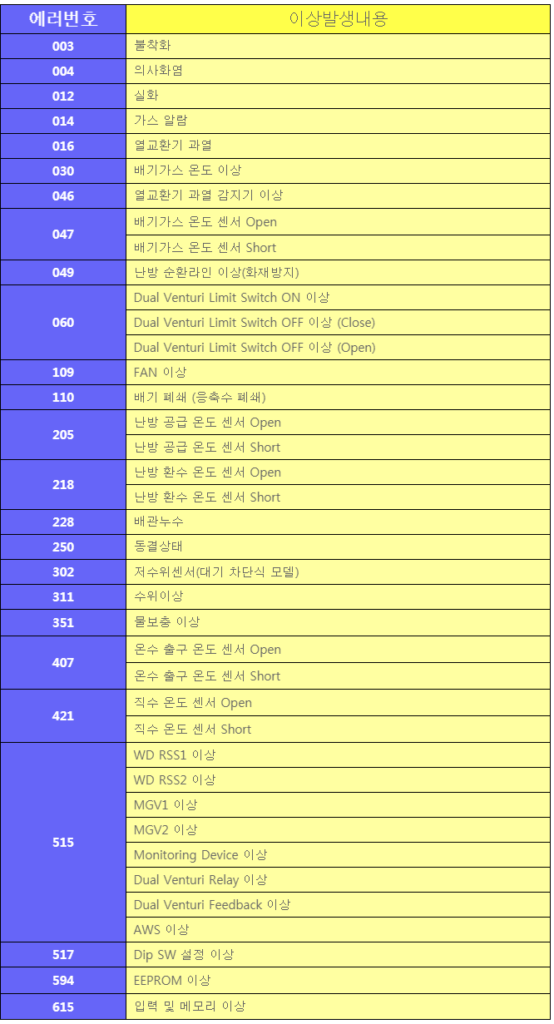 1편 경동나비엔 가스보일러 에러코드 및 조치방법 확인