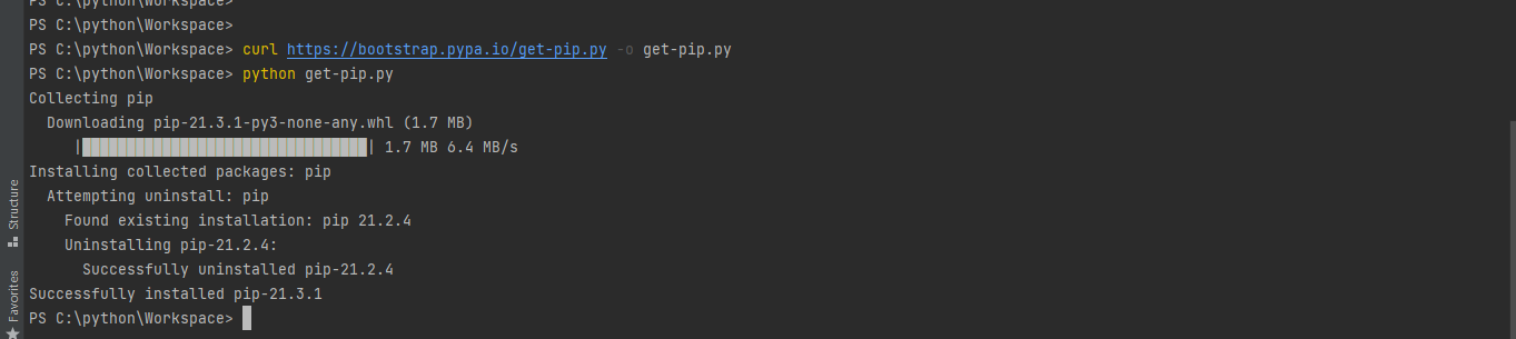 PS C:pythonWorkspace> curl https://bootstrap.pypa.io/get-pip.py -o get-pip.py