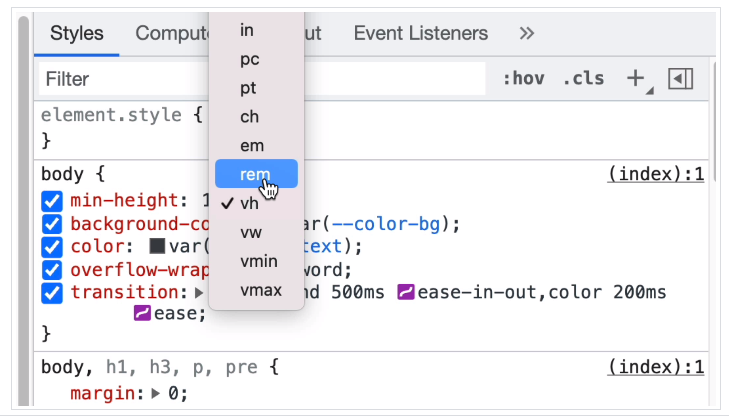 DevTools 에 CSS 길이를 더 쉽고 유연하게 변경할 수 있는 방법이 추가되었습니다.