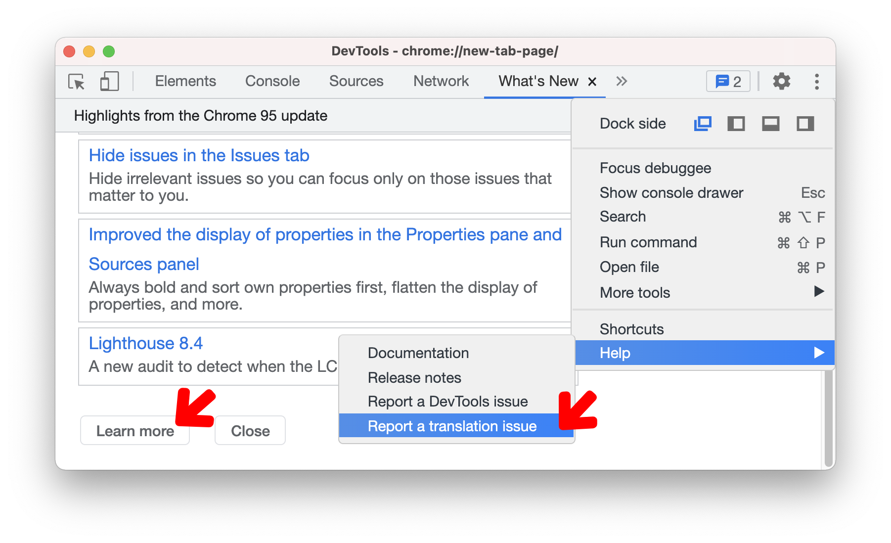 Chrome 94 부터 DevTools 에서 선호하는 언어를 설정 할 수 있습니다. 번역 관련 문제를 발견하였다면, 더 보기 > 도움말 > 번역 문제 신고 를 통해 번역 문제를 제보 하여 더 나은 번역을 만들기 위해 도와주세요.