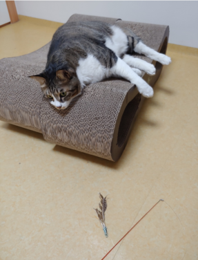 집으로 돌아와 고양이들에게 놀아줬는데,