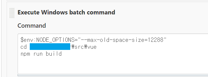 젠킨스 설정에 보니 Execute Windows batch command 설정이 되어 있었다.