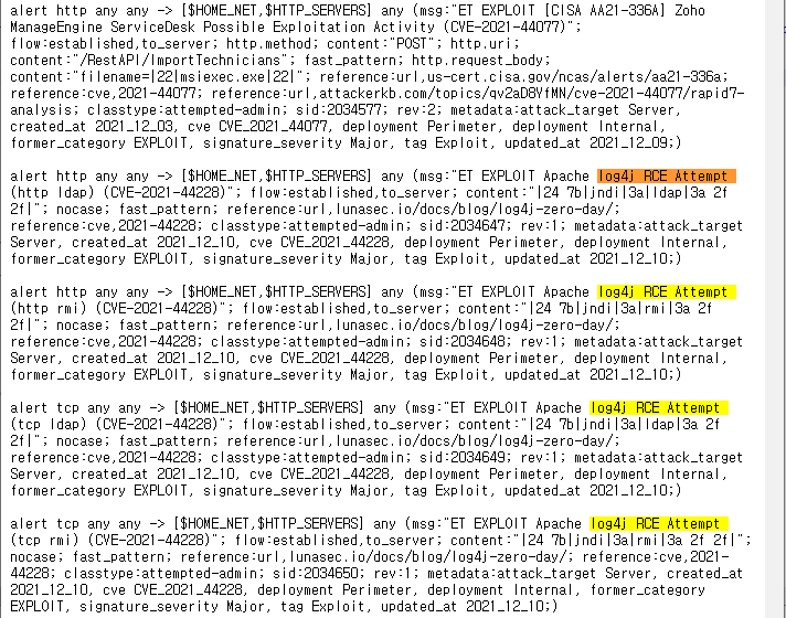 [5] 탐지정책 : https://rules.emergingthreatspro.com/open/suricata-5.0/rules/emerging-exploit.rules
