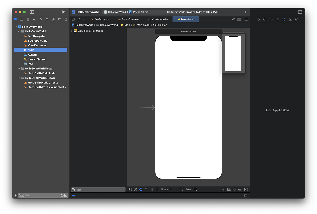• Main.storyboard : UI로 구성된 뷰를 보여주는 파일입니다.