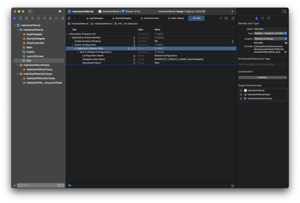 • Info.plist : 앱이 실행되는데 필요한 정보를 관리합니다.