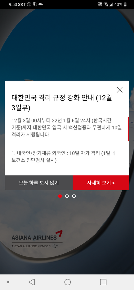 12월 3일부터 한국에 입국시 백신접종과 무관하게 10일 격리가 시작되었다.