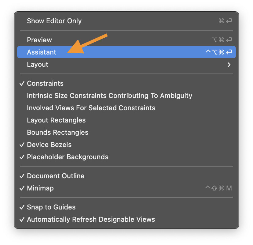 2. 팝업메뉴가 나타나면 Assistant 메뉴를 클릭합니다.