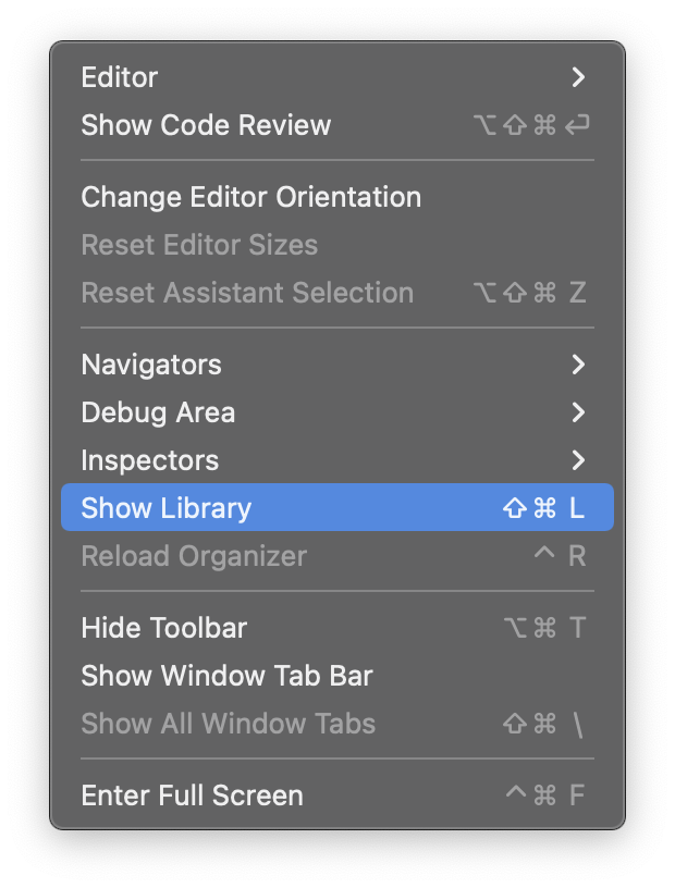 - View 메뉴를 클릭 > Show Library 클릭
