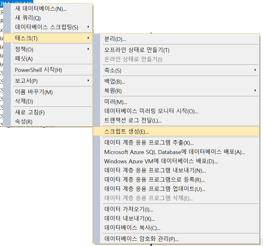 1. MSSQL의 경우 “개체탐색기”에서 DB를 선택 후 마우스 오른쪽 우클릭
