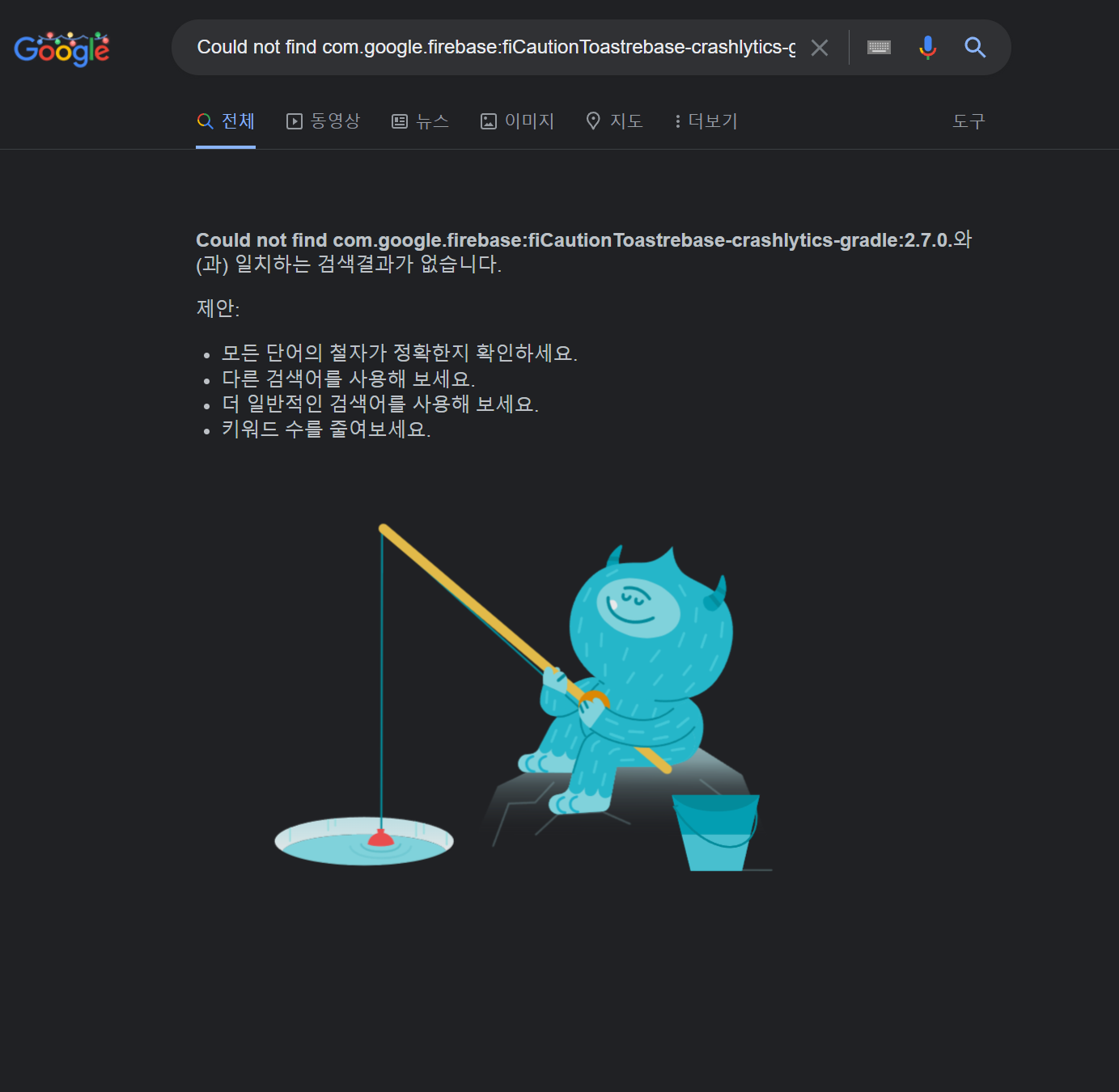[안드로이드] Could not find com.google.firebase:fiCautionToastrebase-crashlytics-gradle:2.7.0. 왜 갑자기 이런 오류가 발생하는것인가?