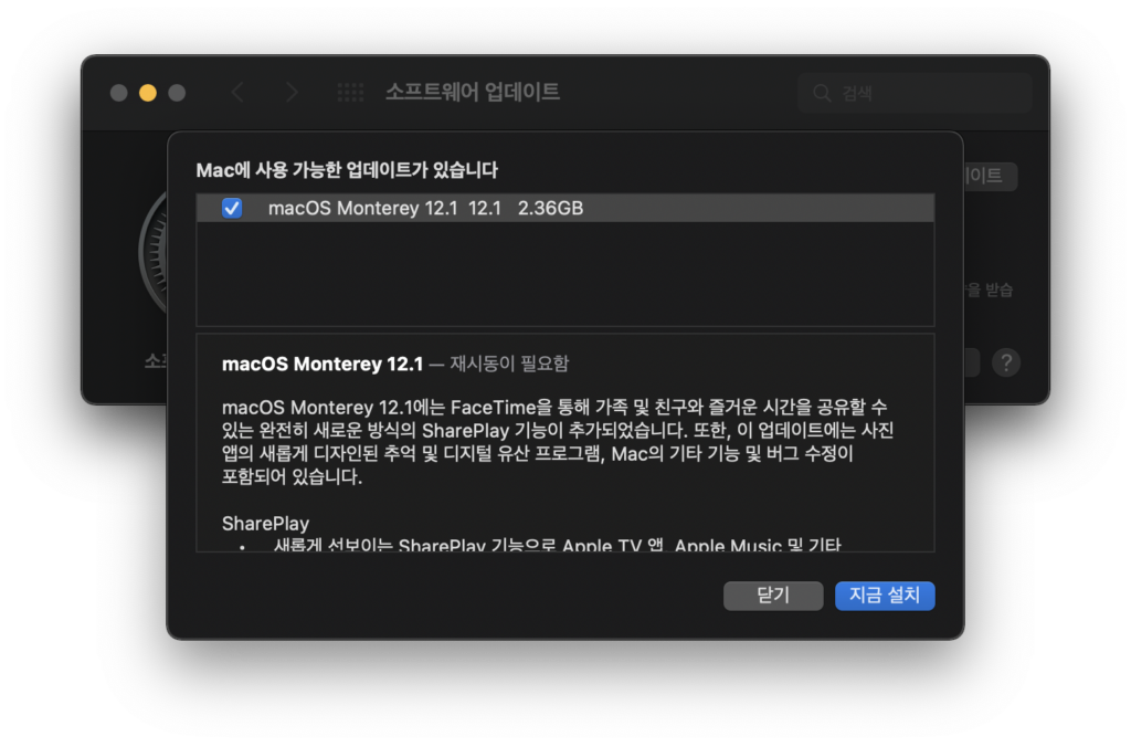 macOS Monterey 12.1 버전의 업데이트 정보를 살펴보기