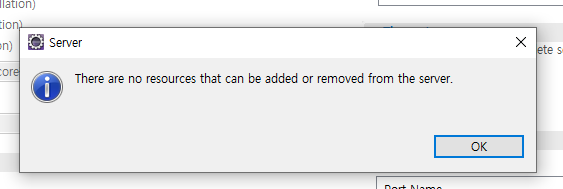 #아파치 톰캣 서버 add 시 resource 안잡히는 문제#, #이클립스 톰캣 Add and Remove#,#이클립스 톰캣 서버 추가 오류#,#there are no resources that can be added or removed from the server eclipse tomcat#