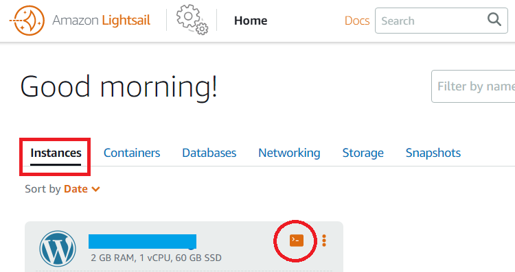1. 라이트세일 접속 후 “>_”아이콘을 클릭하세요