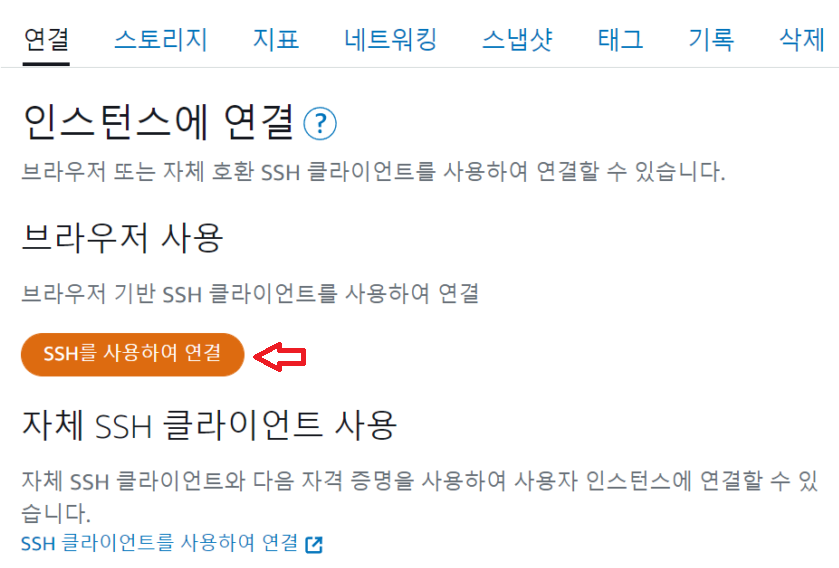 또는 워드프레스 인스턴스를 선택 후 “Connect using SSH” 버튼을 클릭합니다.
