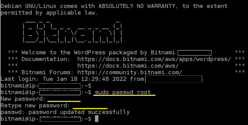 - 다시 bitnami 계정으로 돌아가려면 exit 명령어를 실행하면 로그아웃 됩니다.