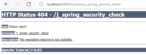 다음 작업으로 로그인페이지로 이동 후 로그인을 시도하였으나 HTTP Status 404 – /j_spring_security_check 오류가 발생하였다.